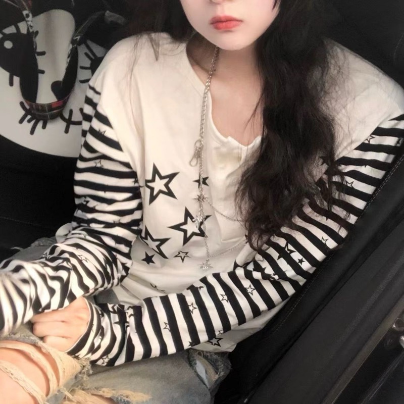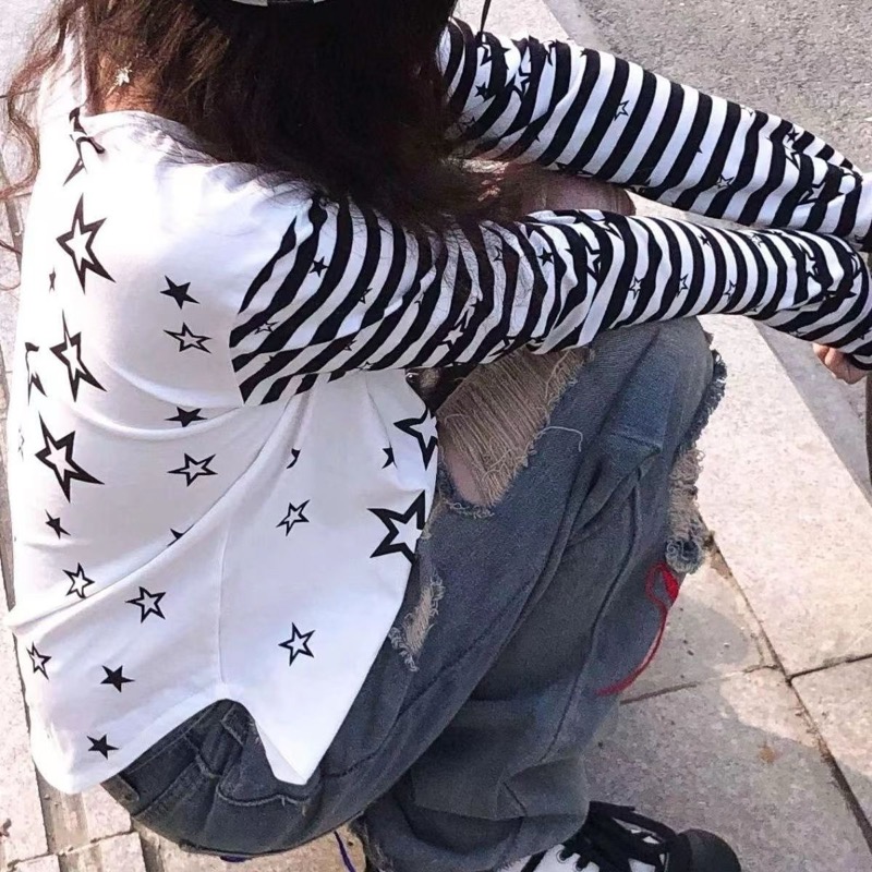 パンクファッションの定番アイテムが登場。 白地に星柄をあしらい、袖部分は黒白ボーダーで個性的なデザインに仕上げました。 スタイリッシュで快適な着心地を提供し、カジュアルな日常使いから特別なイベントまで幅広く活躍。 洗練されたパンクスタイルで、どんなコーディネートにも合わせやすいのが魅力です。