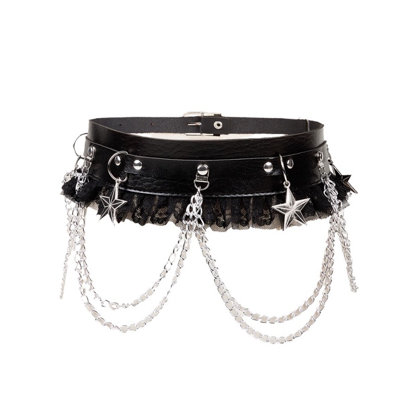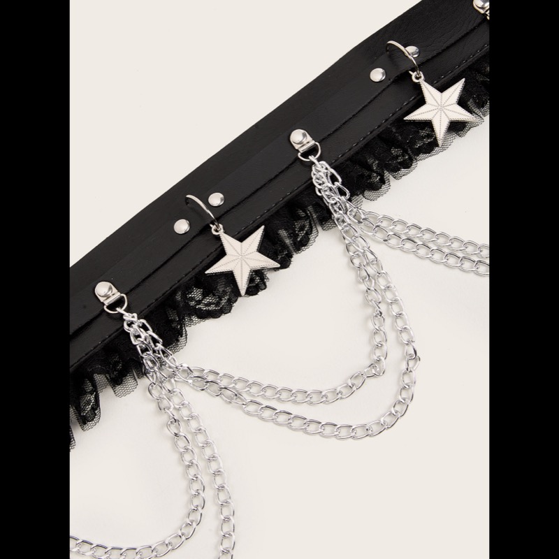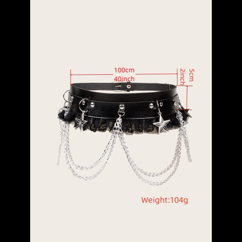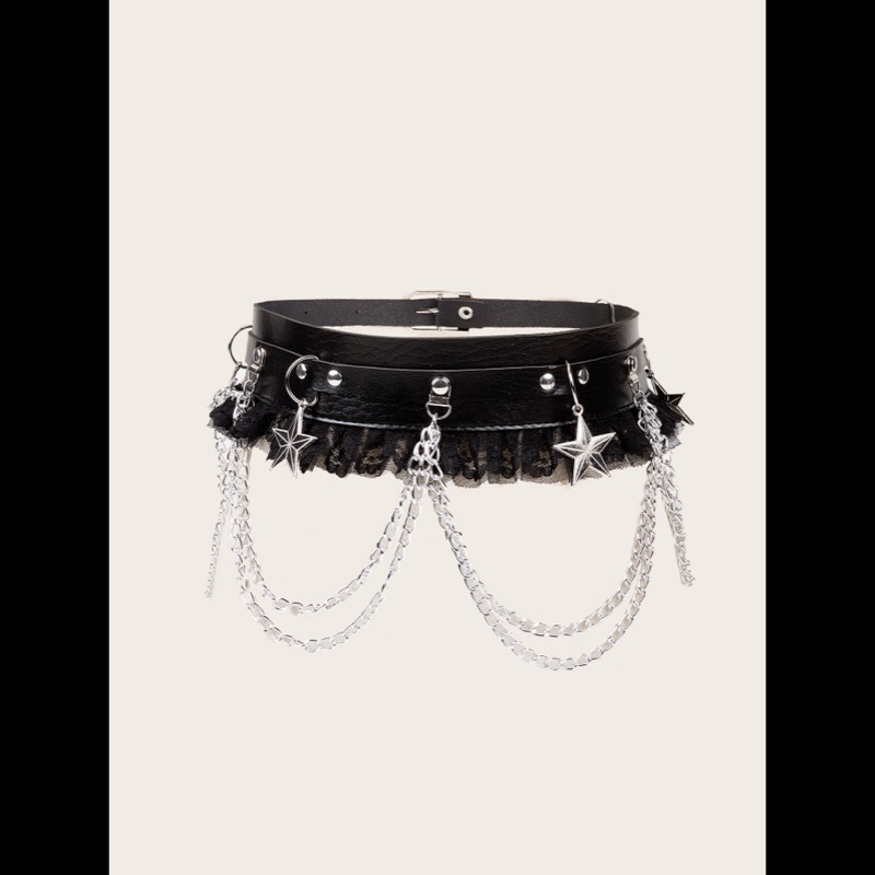 パンクファッションの定番アイテムとして人気の装飾ベルトです。 黒革風素材に星型チャームとレースが組み合わさった個性的なデザインで、 コーディネートのアクセントに最適です。 国内発送で品質も安心、パンクスタイルを楽しみたい方におすすめの一品です。