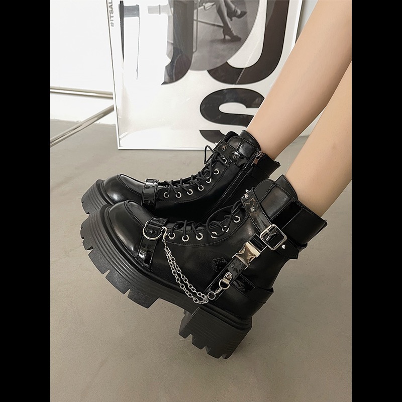 パンクファッションを代表する厚底ベルトブーツです。