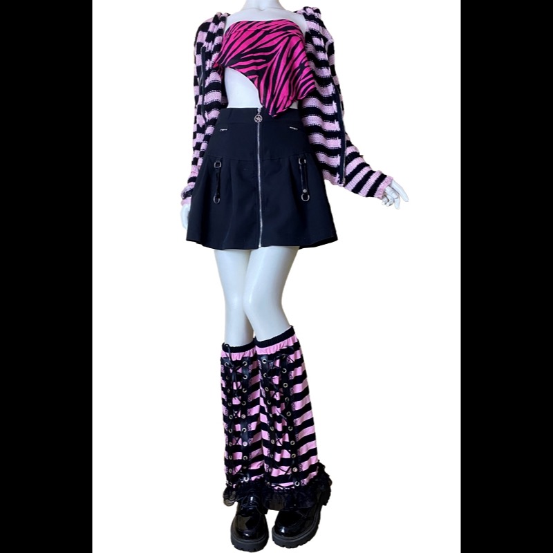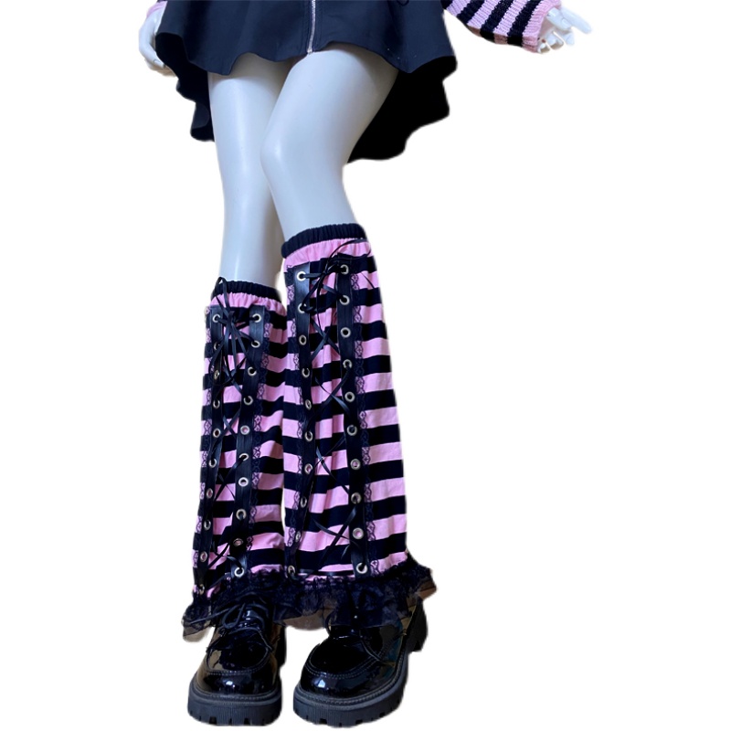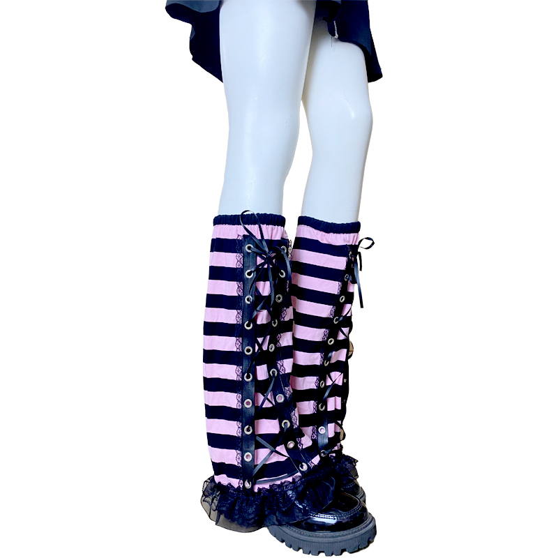 パンクファッションに最適な編み上げ風縞模様の脚カバーです。 薄手で通気性に優れ、快適な着用感を実現しています。 国内生産による独自の魅力と個体差をお楽しみいただけます。 ぜひこの機会にお求めください。